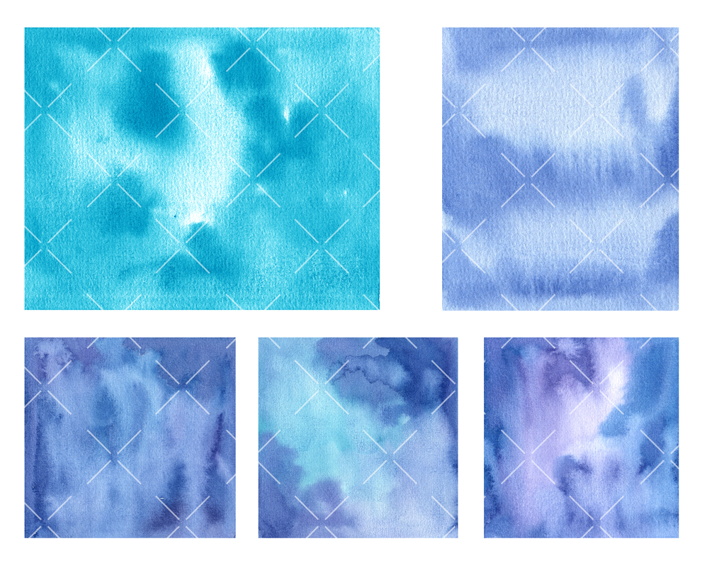 Set of high quality watercolor backgrounds in different colors ans sizes. PNG with blobs cut out from background and solid JPGs, all in high resolution, 300 DPI.